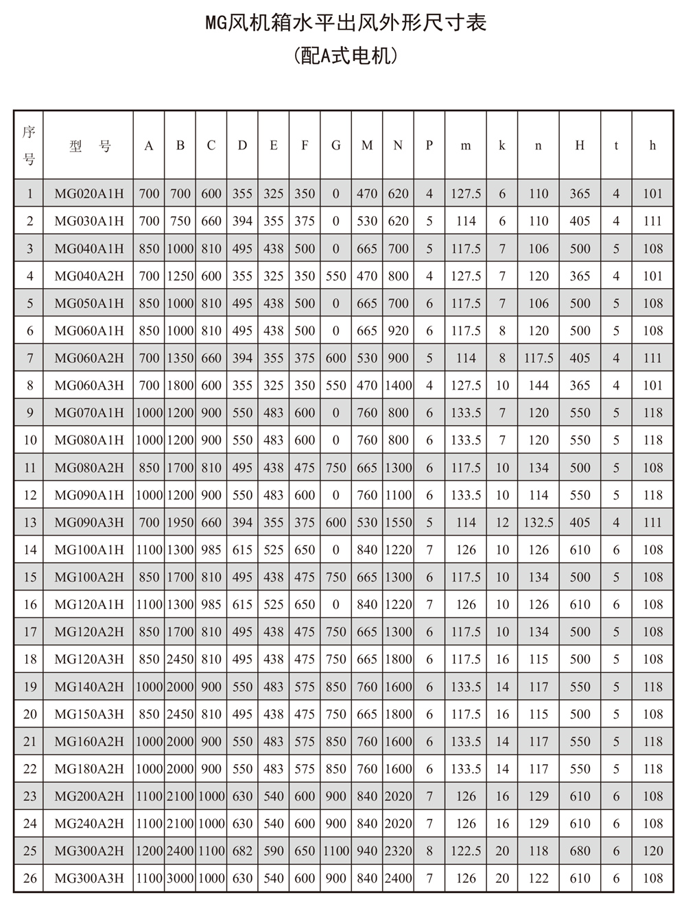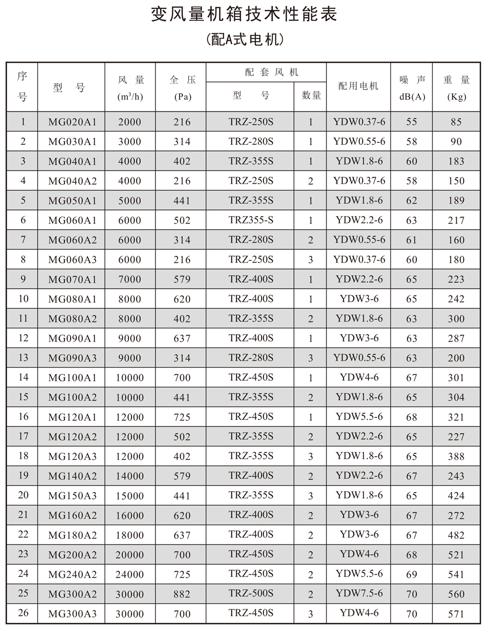 規 格:風機箱規格:020~300,風量:2000~30000 m3/h,風壓:210~600Pa