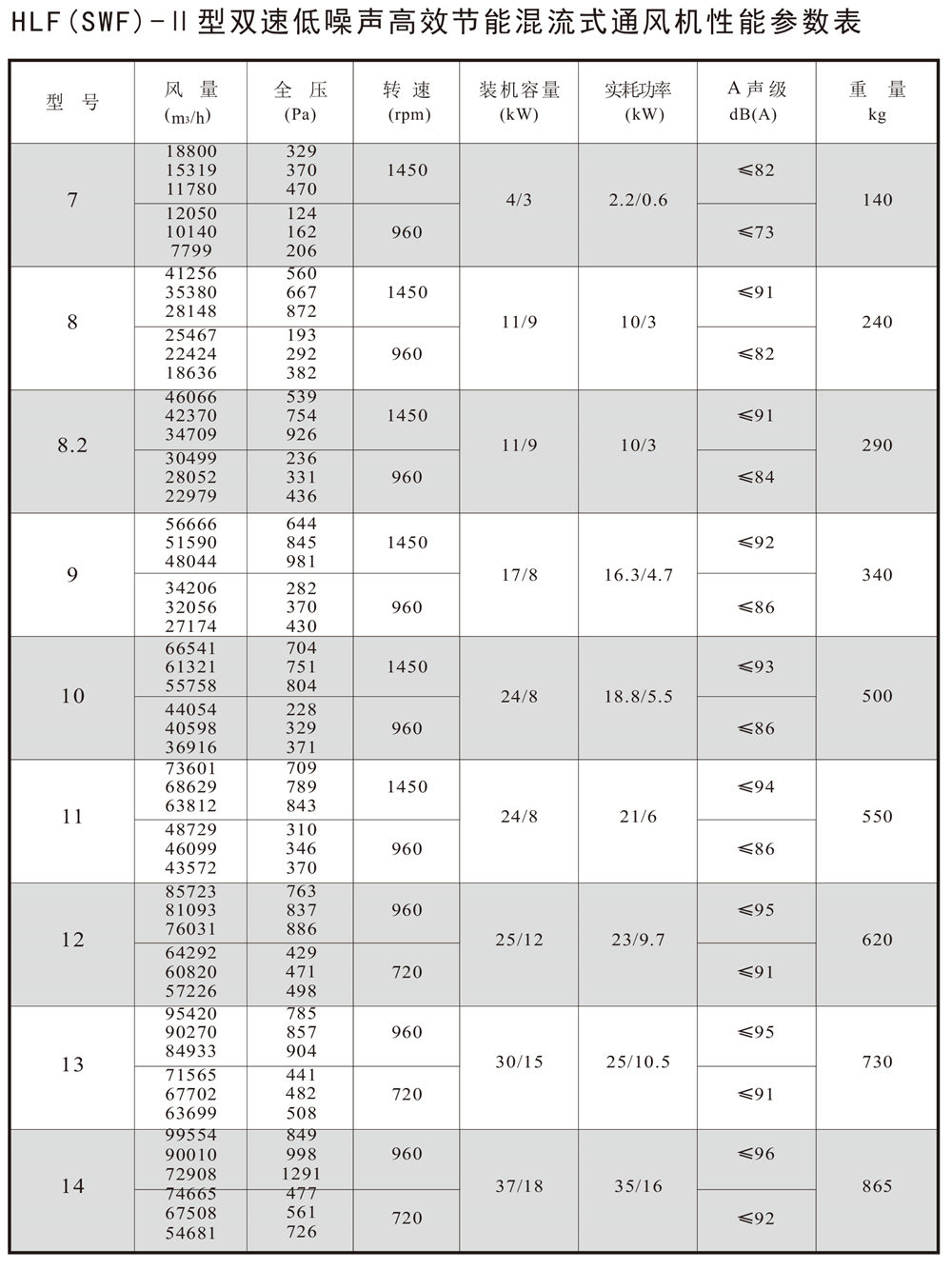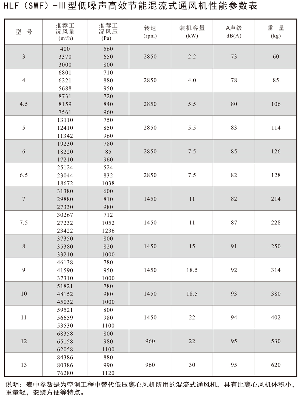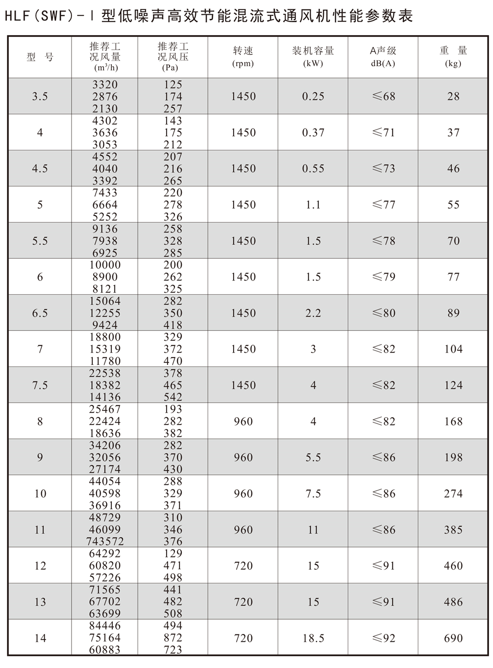 特 點:效率高、噪聲低、結構簡單、運行可靠,(可生產單速、雙速中壓型三種型號及特殊用途的混流風機,包括屋頂式、防爆式、防腐式) 用 途:工礦企業和高層民用建筑的送排風。 規 格:φ400~1300mm, 風量: 3000~96000m3/h;風壓: 140~ 1200Pa。