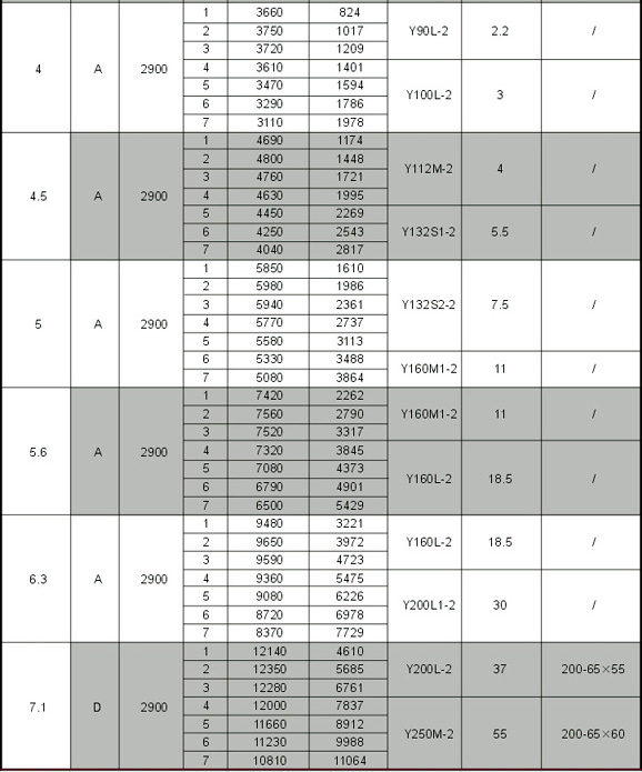 規 格:4#~16#, 風量: 824~81496m3/h. 風壓: 3253~ 16250 Pa。
