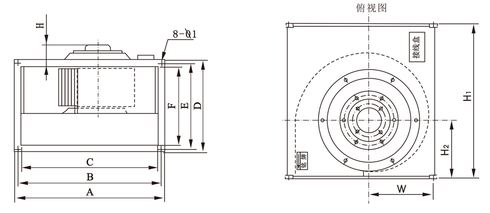特 點:離心風機采用徑向進出風,具有安裝方便,占地面積小,噪聲低,外形美觀等優點。 用 途:廣泛使用于賓館、禮堂、會議室、辦公樓及地下車庫等場合的送排風系統。 規 格:風葉直徑:250~500mm,風量:178~4000 m3/h,風壓:89~515Pa
